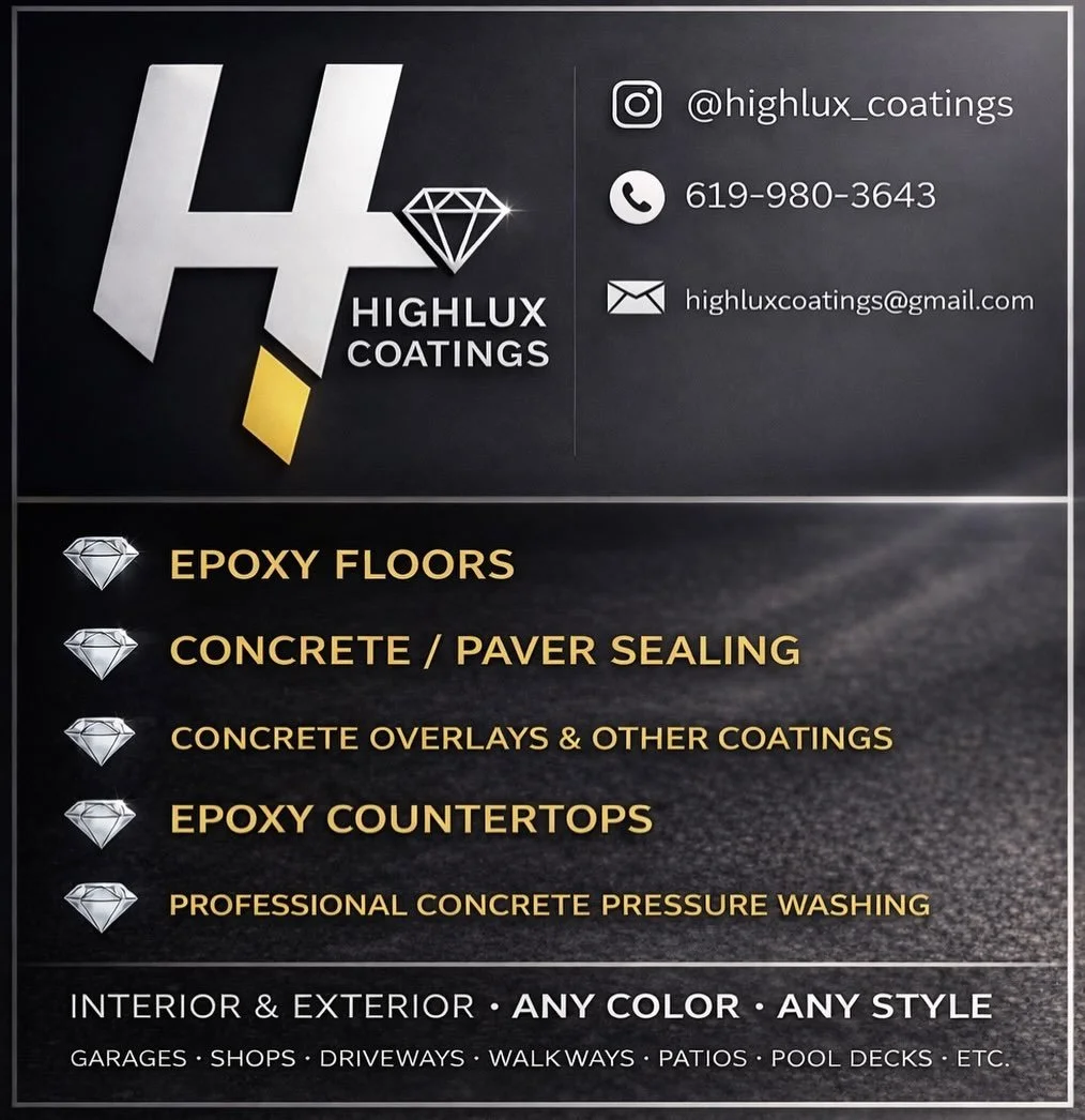 HighLux Coatings provides professional epoxy flooring, concrete coatings, and surface protection services across San Diego and Southern California. From residential garages to commercial spaces, every system is built for durability, clean finishes, and long-term performance.